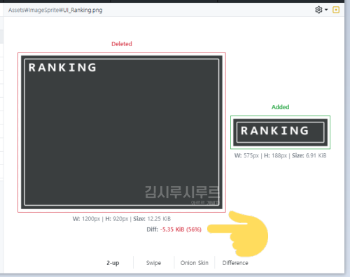 이렇게 했을때 랭킹 이미지는 당장 용량이 약 두 배로 줄었습니다. (와!)