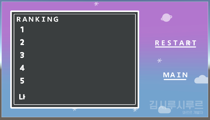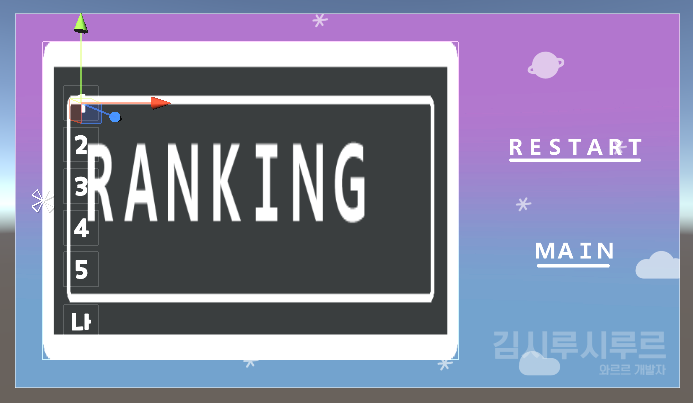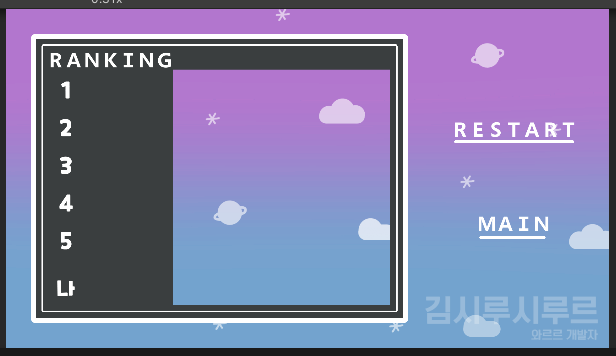 지금 뜯어고치고 있는 게임의 랭킹 UI입니다. 글자는 RANKING을 제외하곤 텍스트로 처리하고 있습니다.
