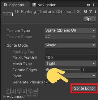인스펙터에 표시되는 Sprite Editor를 눌러 켭니다.