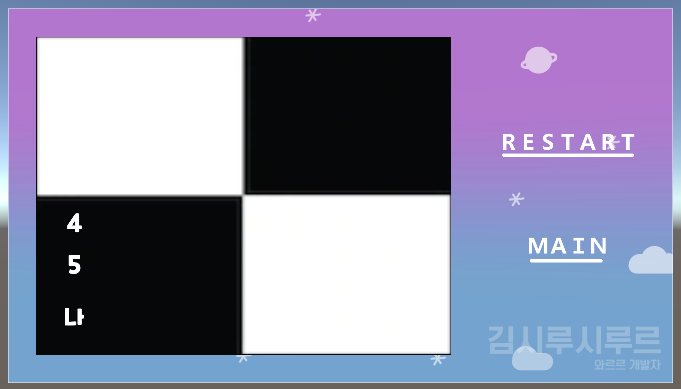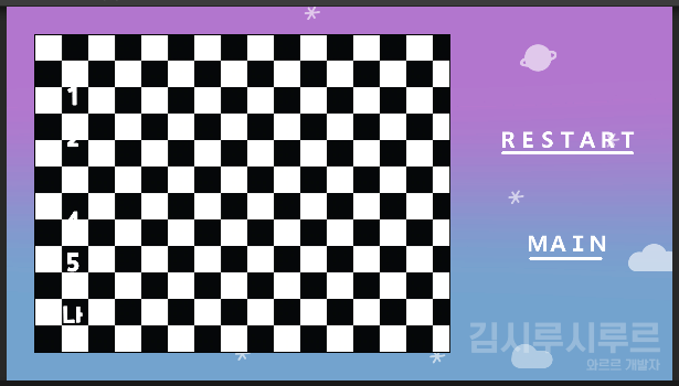 이것도 단순히 검은색 흰색이 2×2 교차로 반복되고 있으므로, 네 칸을 계속 연장해주면 되는 것인데...