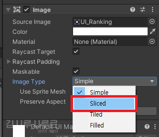 이미지 컴포넌트에서 Image Type를 Sliced로 변경해봅시다.