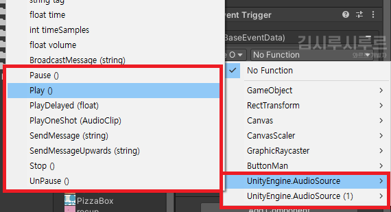 예를들어 버튼 효과음이라면, 버튼 오브젝트에 이벤트 트리거를 추가하고 이벤트를 추가하면 됩니다.