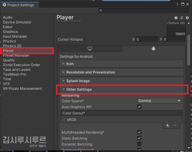 Edit → Project Settings → Player