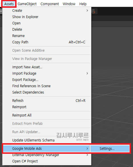 유니티에서 Assets → Google Mobile Ads → Settings… 로 진입합니다.