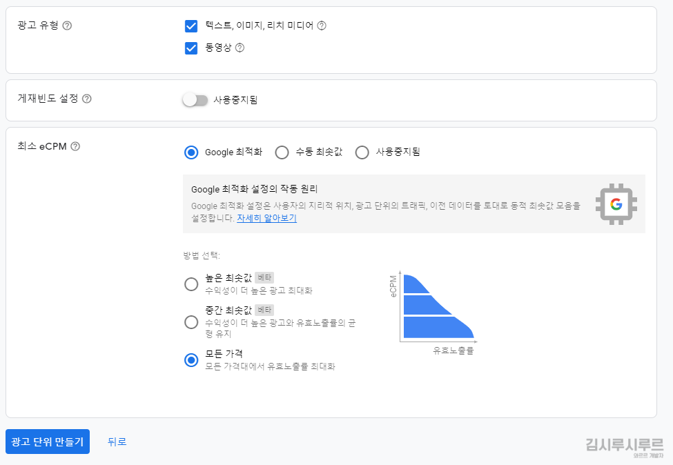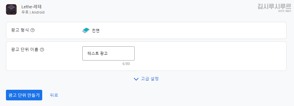 광고 단위를 설정합니다. 이름은 그냥 많은 광고를 사용할 때의 구별용입니다.