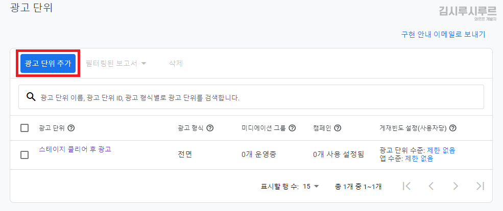 왼쪽 위에 있는 광고 단위 추가를 눌러 새로운 광고를 추가해줍시다.