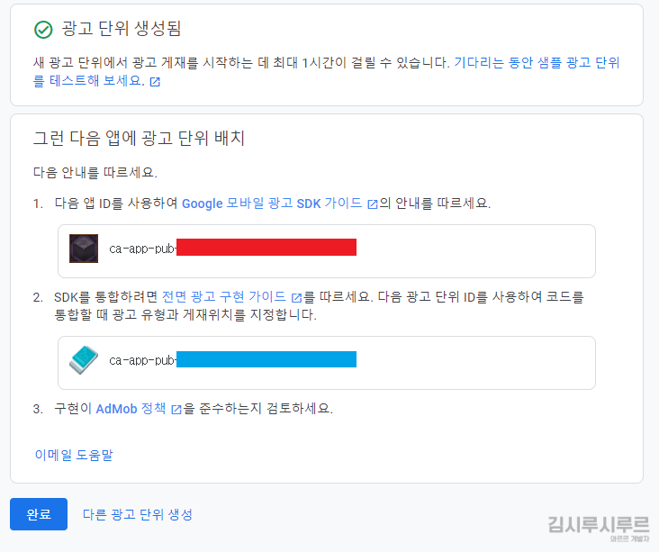 위 예시 코드에 있는 건 구글이 지원하는 테스트 ID입니다.