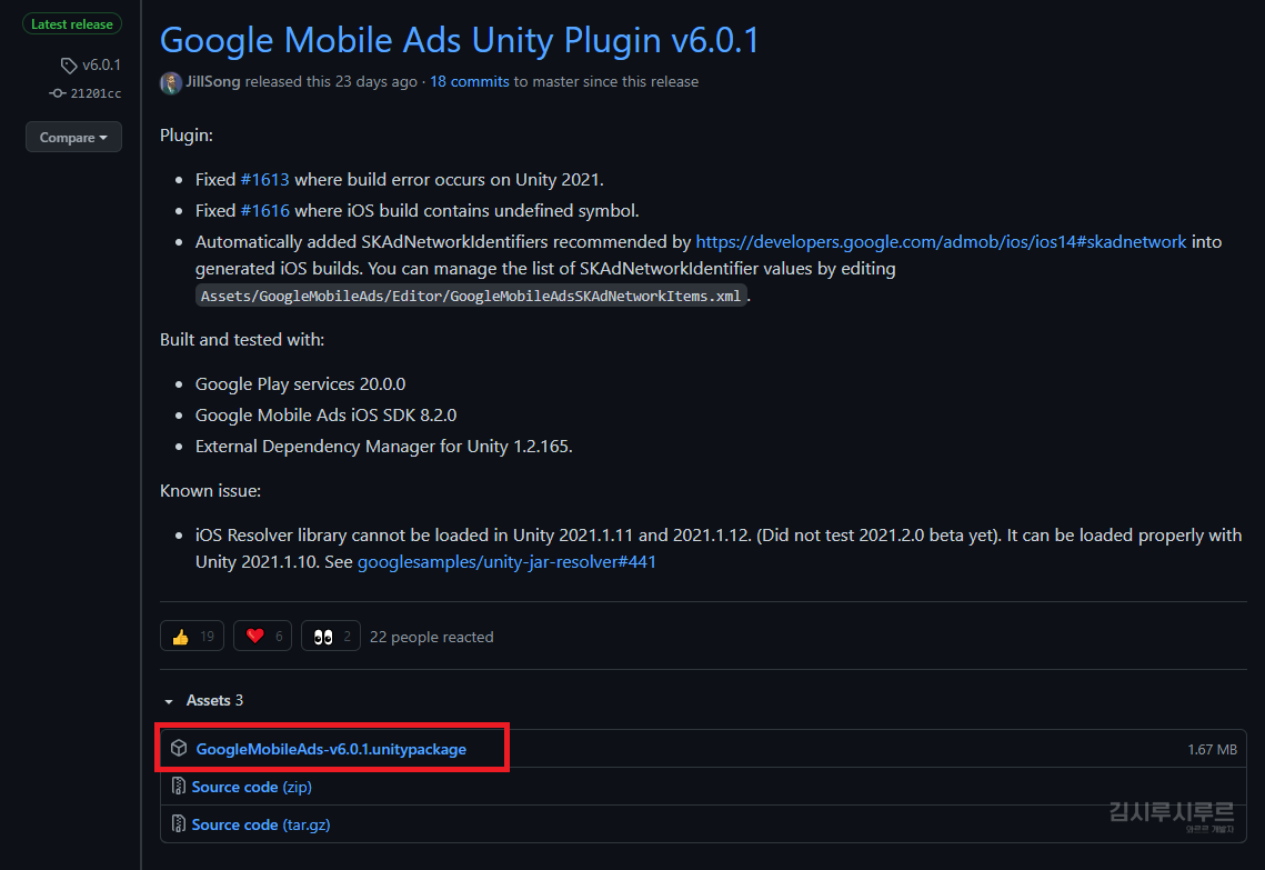 깃헙으로 들어가셨으면 유니티 패키지를 다운로드받습니다.