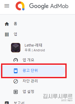 이제 등록된 해당 앱 화면으로 이동해서, 광고 단위로 이동합니다.