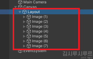 이 설명에서는 Horizontal Layout Group을 썼습니다! 다른 레이아웃과의 차이에 대한 것은 아래에 나옵니다.