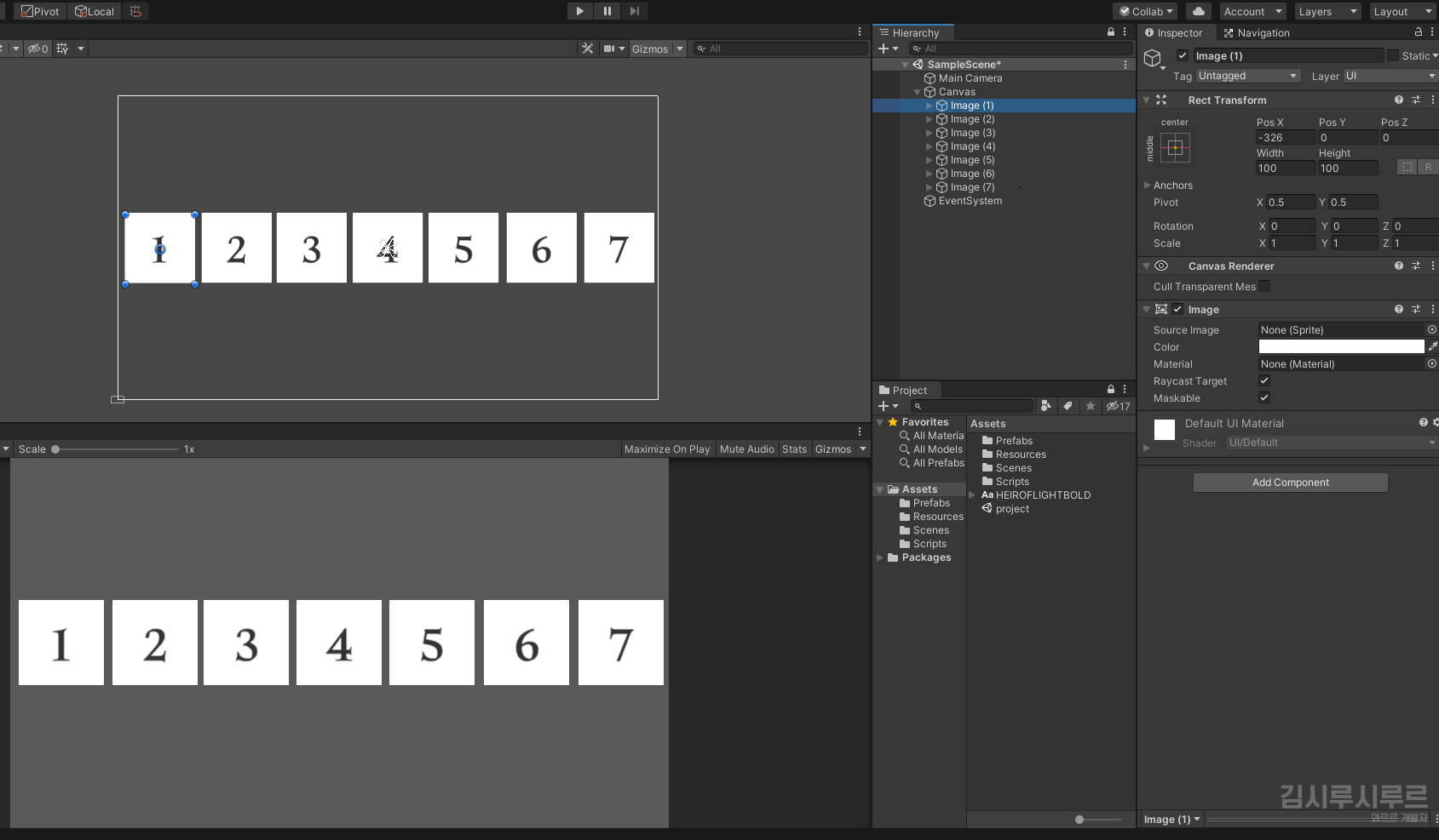어쨌든 이 글에선 일정 간격으로 UI 오브젝트(이미지, 버튼 등)를 배치하는 방법에 대해 설명합니다.