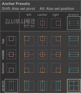 이 설정은 상위 오브젝트에 따라 정렬하는 것이기 때문에, 상위 오브젝트의 크기를 잘 확인해주세요.