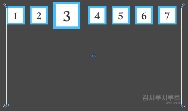 실제로 스케일을 조절한 오브젝트 다음에 오는 여백은 스케일 값을 따라갑니다.