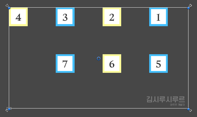 이 글에서는 대충 만든 이 7개의 이미지를 가지고 설명합니다. 구별을 위해 각각 숫자를 붙여줬습니다!