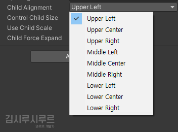 Child Alignment - 정렬되는 하위 오브젝트들을 상위 오브젝트의 어디에 위치하게 할 건지