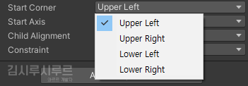 그리드 레이아웃 그룹은 수평, 수직과는 조금 다릅니다.