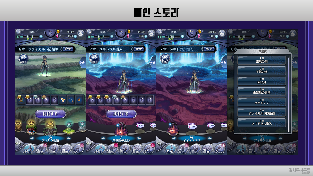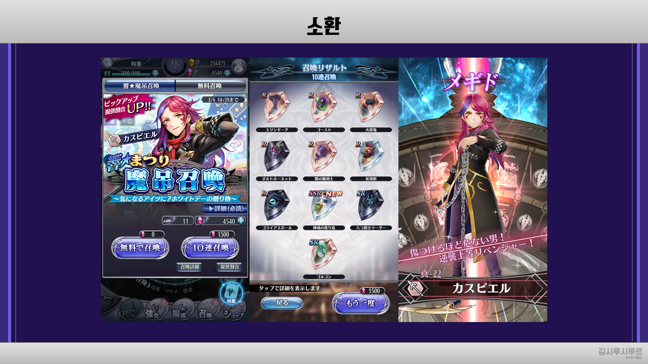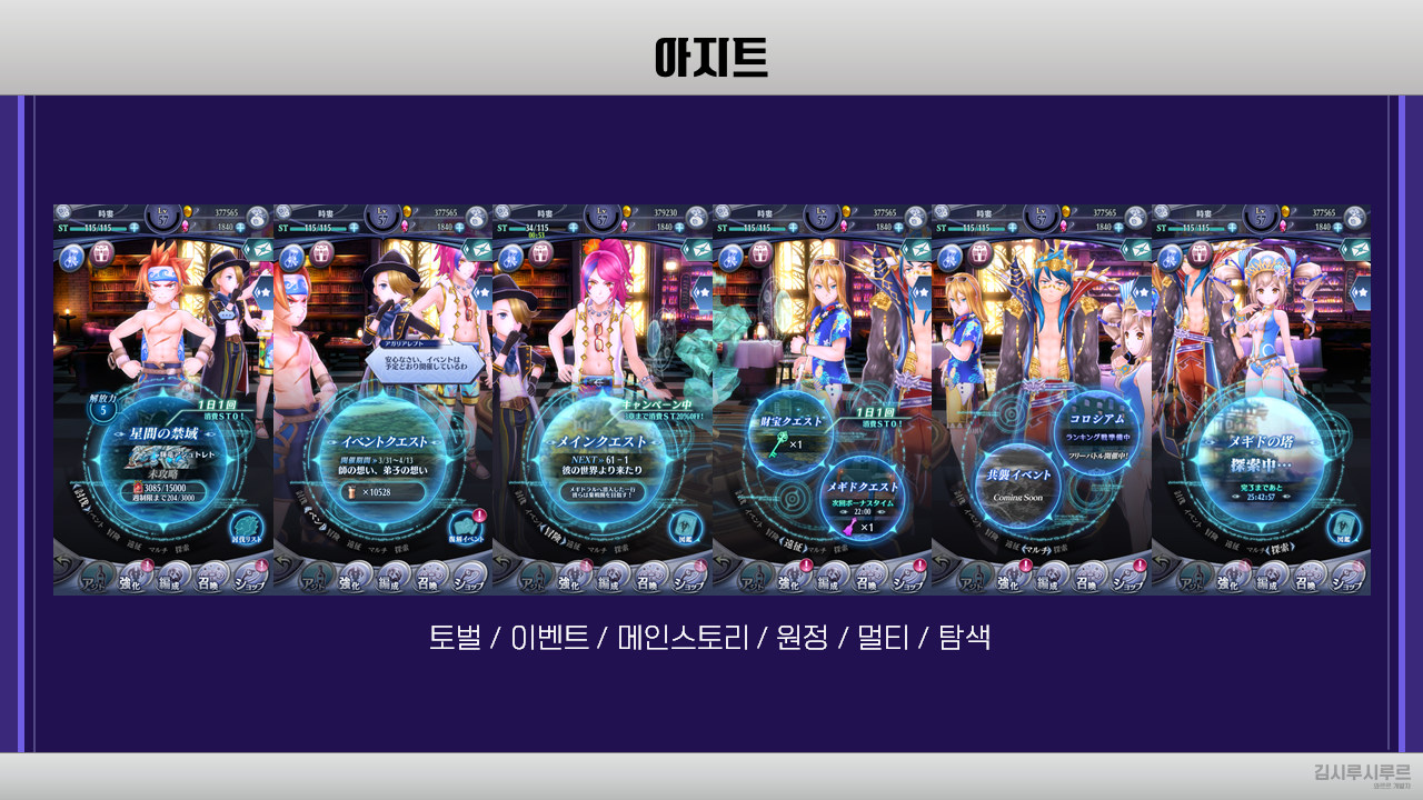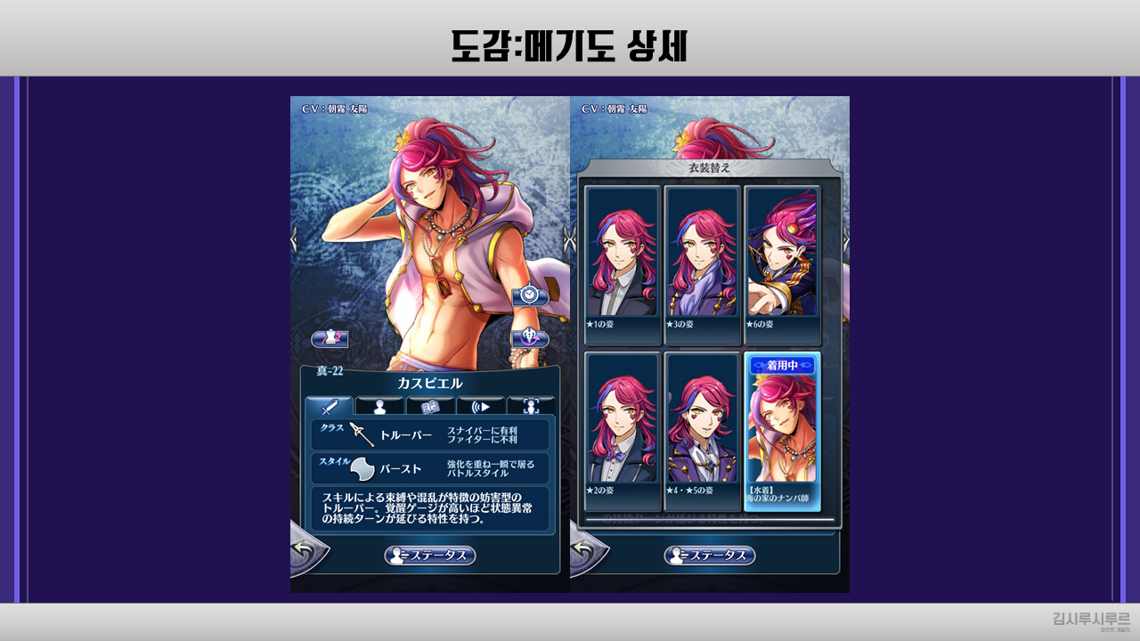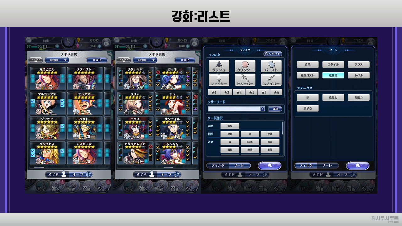 분류 UIUX / 기획 목적 개인 과제 주제 게임 UI 한 부분 뽑아서 기획서 작성 소재 메기도72 (メギド72) 제작 파워포인트, 워드프로세서 2020년 4월~5월 이미지는 메기도72 공식홈페이지 디자이너 기사