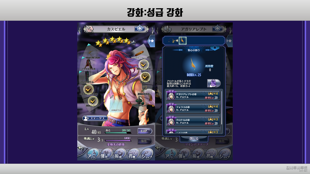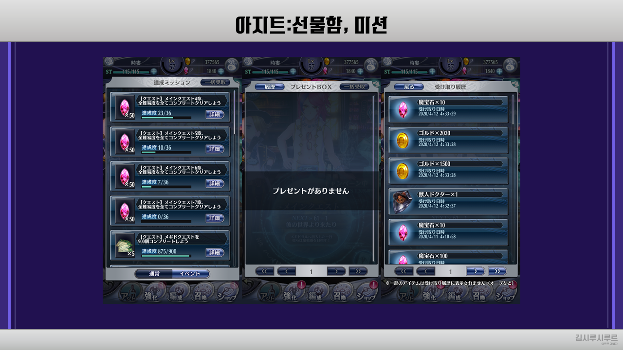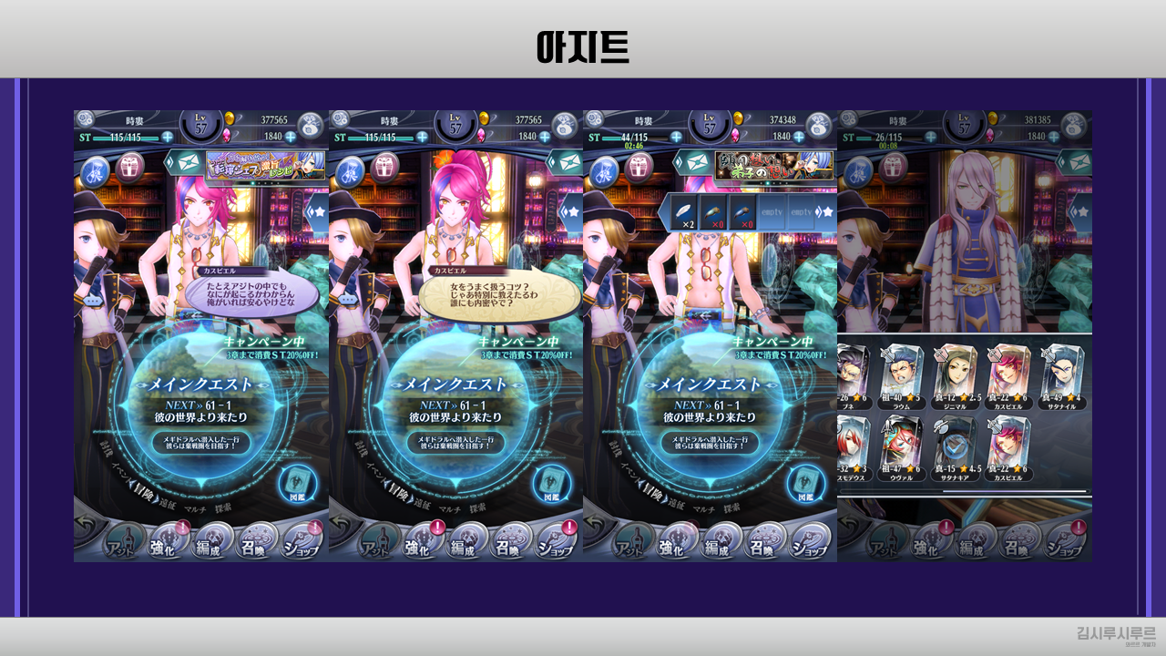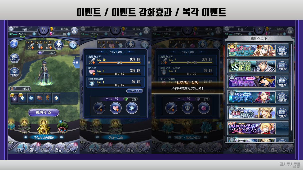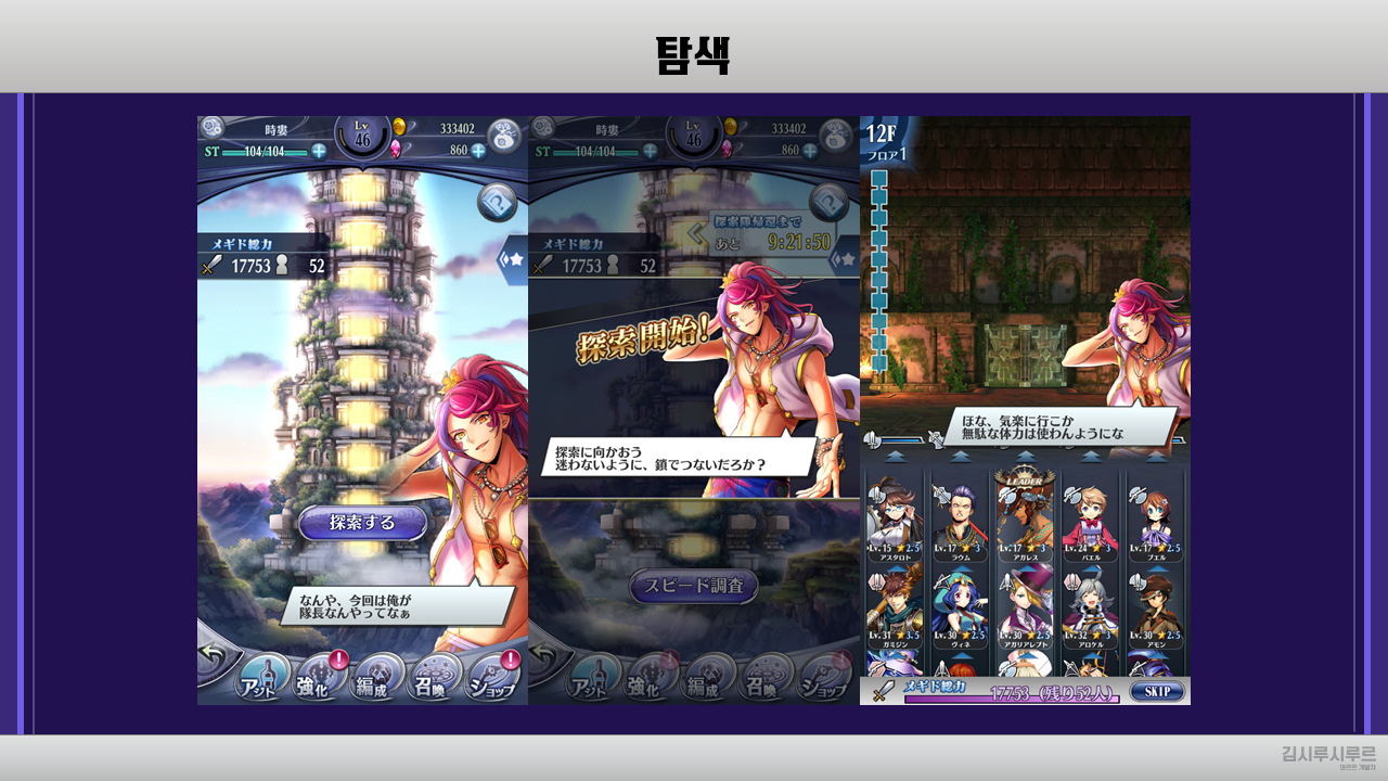 분류 UIUX / 기획 목적 개인 과제 주제 게임 UI 한 부분 뽑아서 기획서 작성 소재 메기도72 (メギド72) 제작 파워포인트, 워드프로세서 2020년 4월~5월 이미지는 메기도72 공식홈페이지 디자이너 기사
