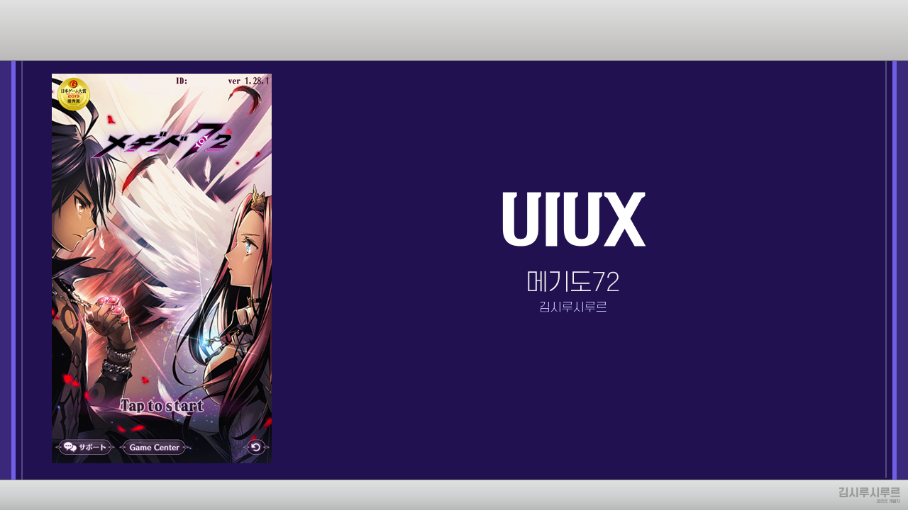 분류 UIUX 목적 개인 과제 UIUX가 마음에 들었던 게임 마음에 들었던 요소 위주로 UI 정리하기 (PPT 6페이지 이내로) 메기도72 (メギド72) 파워포인트 2020년 3월 말 'PPT 6페이지 이내로'라는 조건이 가장