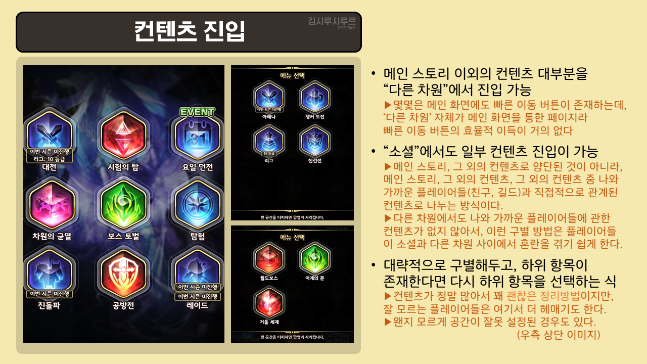 | 주제 | UIUX가 마음에 안 들었던 게임 이유가 되는 부분 위주로 UI 정리하기 (PPT 6페이지 이내로) |