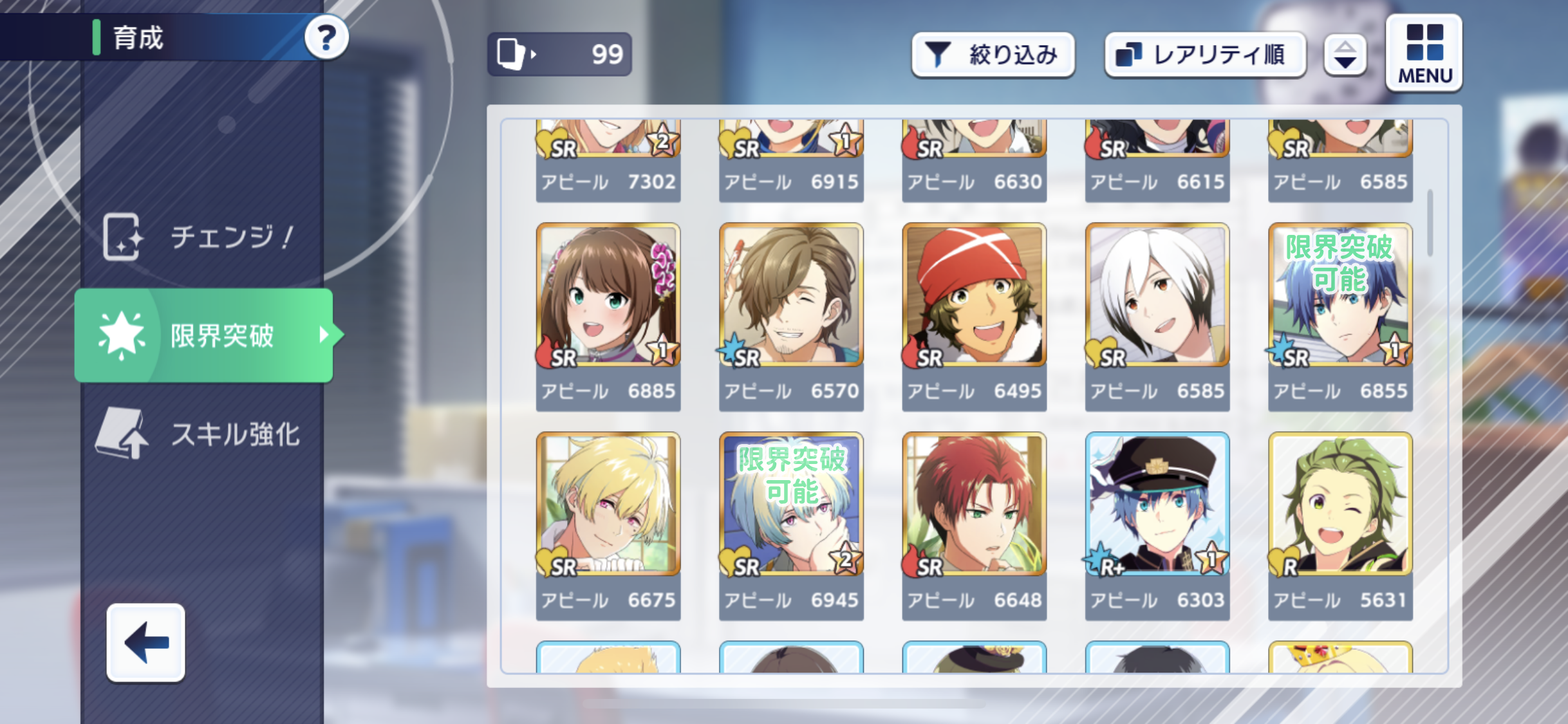 한계돌파에도 한계돌파가 가능한 캐릭터를 우선해서 표시해주면 좋겠네요. 플레이어가 원한다면 "우선 표시할 것인지, 아닌지"에 대해 선택해도 되고요. (이 경우 정렬/필터 조건에 하나가 추가되는 셈이겠죠)