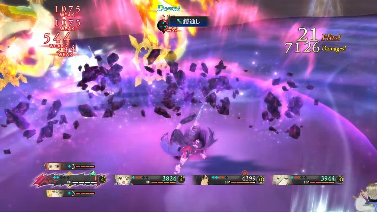 또한, 본 작에서는 한 번 약점을 공격한 후의 공격은 콤보가 이어지는 한 모두 약점 속성 공격이 되기 때문에, 어떻게 적의 약점 속성을 노릴지가 전투의 열쇠가 된다. 전투 난이도를 NORMAL → HARD → EVIL → CHAOS로 높이면 높일수록, 약점 공격의 대미지 배율이 올라가기 때문에, 고난이도에서는 약점의 중요성이 한 층 더 올라간다.