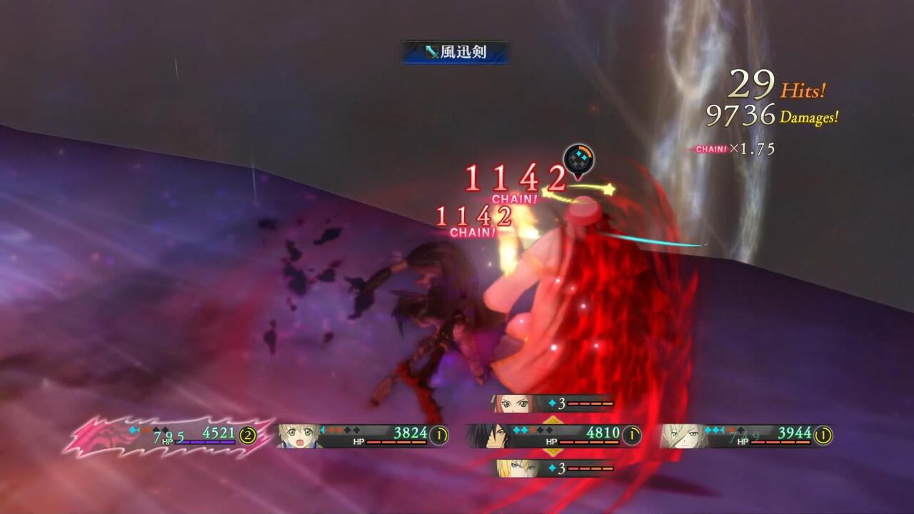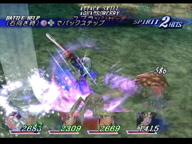본 작의 전투 시스템은 시리즈 중에서도 꽤 특수해서, 처음엔 조금 고생하지만 이해를 하면 할수록 재미있어진다. 특기나 오의를 사용한 뒤에 술법을 영창하고, 그 영창 모션을 캔슬해서 빈틈을 줄이는 통칭 「영창 캔슬」 등, 플레이어가 독자적으로 짜낸 테크닉도 많아, 취할 수 있는 공격의 선택지나 전략의 폭은 「이터니아」에 비해 크게 넓어졌다.