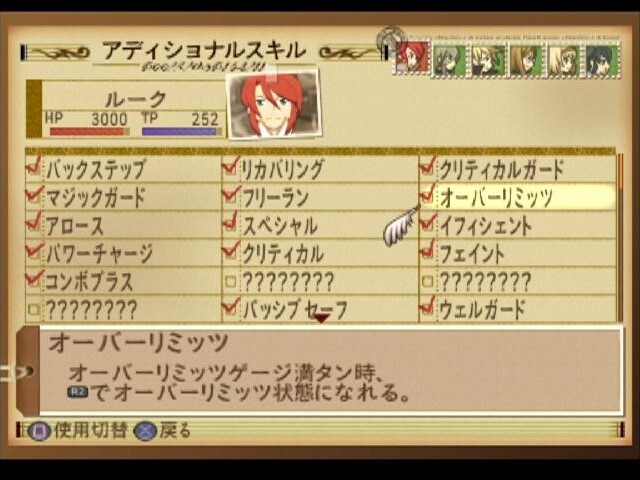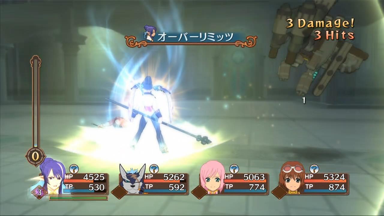 시리즈 정규 시스템인 파워 업 상태 「오버 리미트」에는 레벨 1~4의 단계(PS3 판에서는 레벨 8까지)가 설정되었다. 발동 중에는 「일반 공격이나 술기를 무한 콤보로 쓸 수 있다」, 「술법의 영창 시간이 0이 된다」, 「TP의 소비량이 0이 된다」라는 메리트가 있어, 레벨이 오르면 오를수록 강화된다.