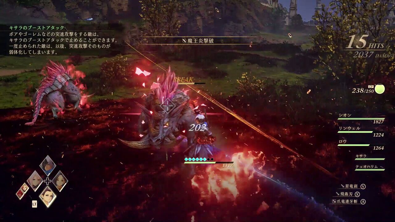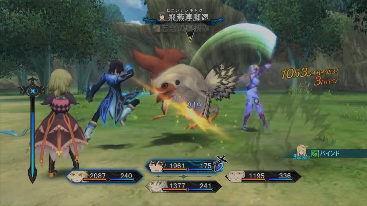 이 플레이 리포트에서도 언급하고 있지만, 「어라이즈」는 지금까지의 작품에 비해 공격 태세를 지속하기가 쉽고, 뛰어난 액션을 보이는 게 특징이다. 술기를 쓰기 위해 필요한 공격 자원인 「AG (아츠 게이지)」가 떨어져도 동료로부터 원호 공격 「부스트 어택」을 쓰면 AG를 회복할 수 있으며, 적으로부터의 공격을 아슬아슬할 때 회피하면 반격을 먹일 수 있는 「카운터 레이드」가 발동하여, 순간적으로 수비에서 공격으로 전환할 수 있게 되어있다. 이런 액션을 고려한 시스템도 시대에 맞춰 진화한 시리즈의 새로운 방향성이라고 할 수 있을 것이다.