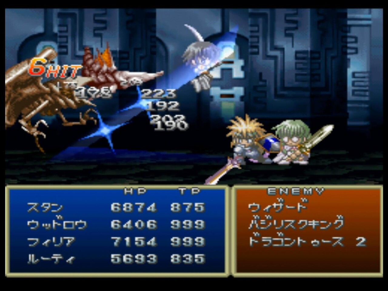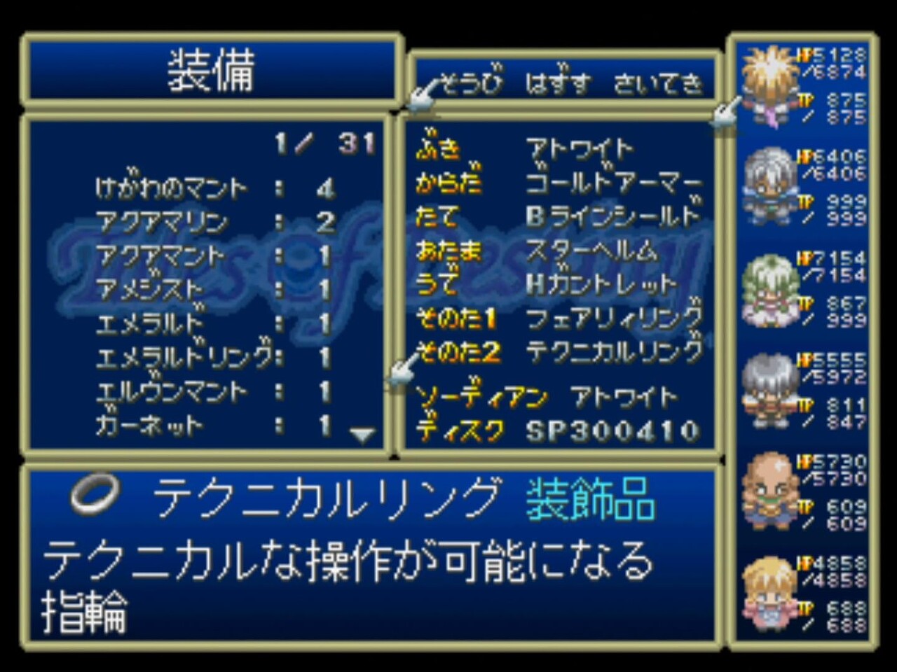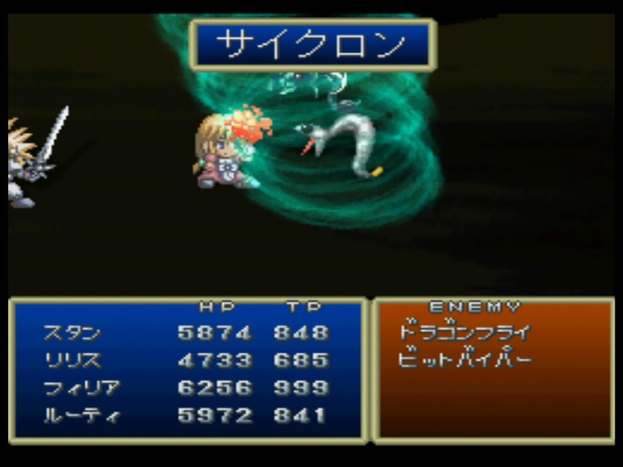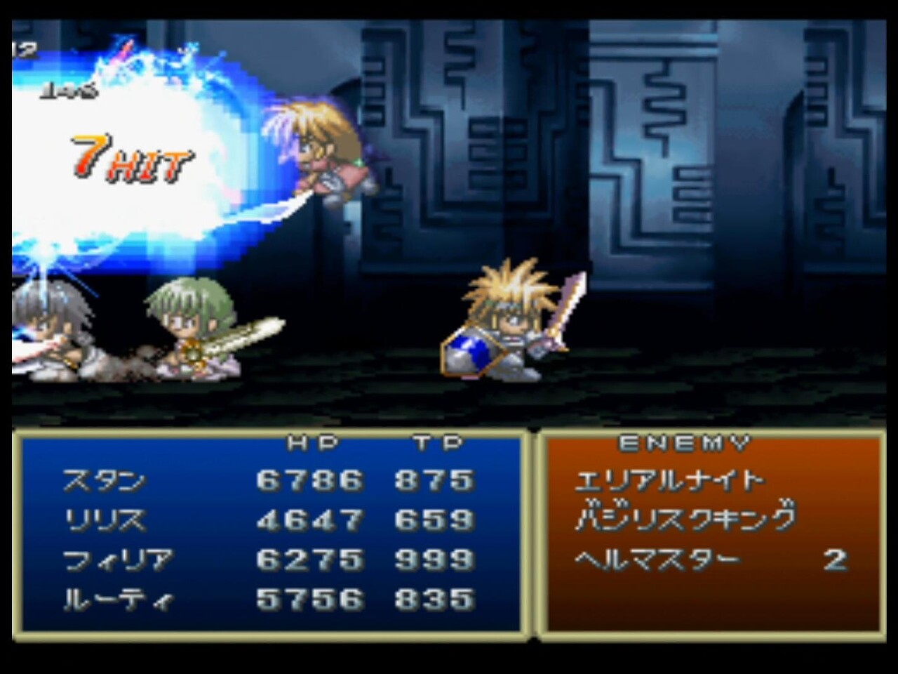 하드웨어가 PlayStation으로 이동한 「데스티니」에서는 오프닝 애니메이션이 처음으로 만들어지고, 캐릭터들의 회화극 「스킷」의 원형이 된 「액티브 파티 윈도」가 등장하는 등, 연출이 강화되었다. 전투 면에서는 「E-LMBS (엔한스 리니어 모션 배틀 시스템)」이 채용되어, 그래픽이나 공격의 연출이 화려해지거나, 그 외에도 이런저런 점이 플레이하기 쉽게 개선되었다.