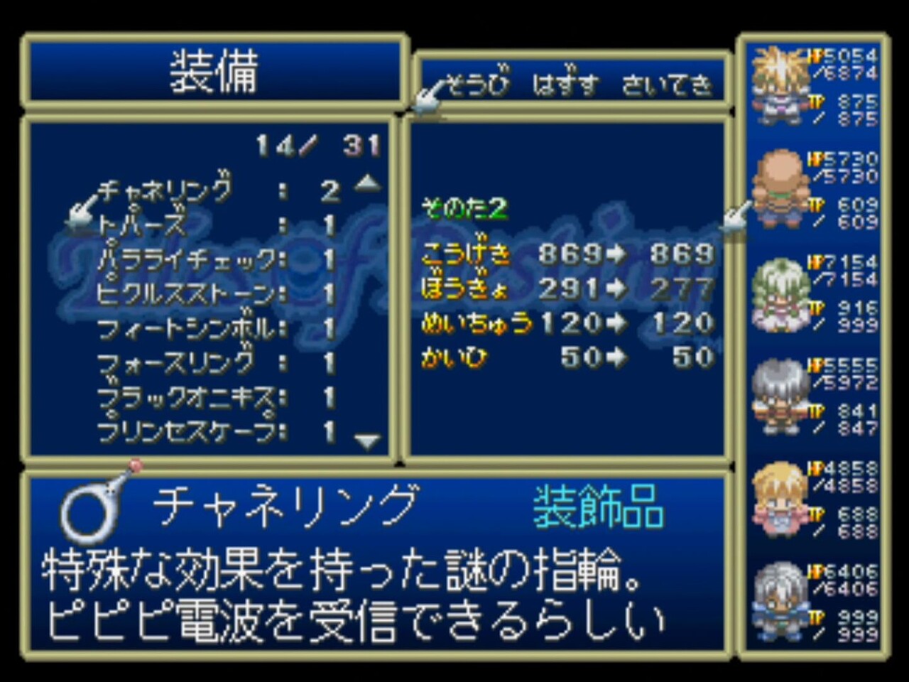 채널 링은 캐릭터에게 장비하면 2P의 컨트롤러로 그 캐릭터를 조작할 수 있게 된다. 이걸로 2인 동시 플레이를 즐길 수 있게 되었다. 당시에는 1P가 조작할 수 있는 건 주인공인 스탄으로 고정이었기 때문에, 그 이외의 파티 멤버를 사용하는 수단이기도 했다.