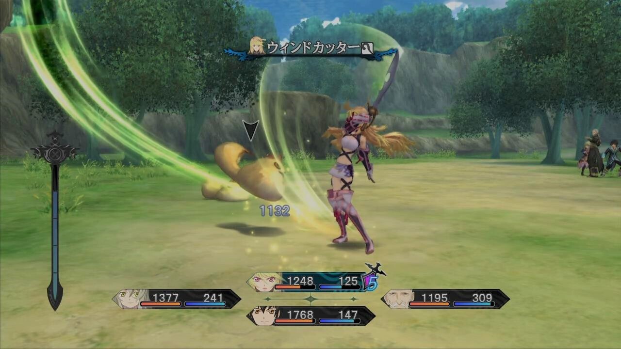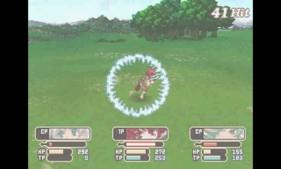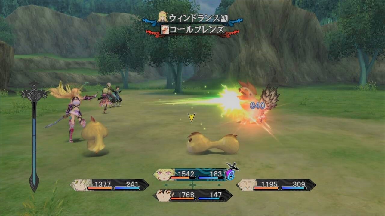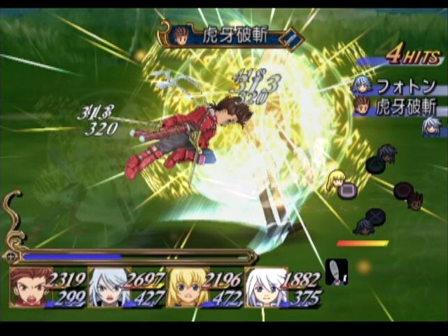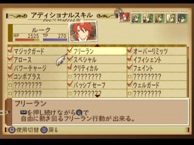 그리고, 본 작에서 가장 주목할 포인트는 「프리 런」이 도입되었다는 점이다. 프리 런은 [L2] 버튼을 누르면서 방향키를 입력하는 것으로 전투 필드를 자유롭게 걸어 다닐 수 있는 시스템. 이것으로 각 캐릭터와 적을 잇는 직선상으로만 이동할 수 있었던 「심포니아」에 비해 이동의 자유도가 크게 올라갔고, 보다 3D 타이틀다운 깊이를 만들어내 전투를 즐길 수 있게 되었다.