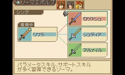 또한 「소마」라 불리는, 캐릭터 고유의 무구를 강화하는 개성적인 육성 시스템도 특징이다. 「하츠」에선 일반적인 RPG에서 말하는 무구를 구입한다는 개념이 없고, 소마를 강화하는 것으로 새로운 술기를 얻거나, 패러미터를 강화한다. 소마를 강화하는 「소마 스킬」은 적을 쓰러뜨리거나 필드를 탐색해서 획득할 수 있는 소재를 사용한다.