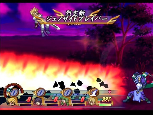 뒤에 발매되는 작품과 비교하면 시스템은 몹시 단순하고, 한 번에 연속해서 쓸 수 있는 일반 공격은 1회뿐이다. 게다가, 그 뒤에 특기·오의를 캔슬해서 사용할 수도 없다.