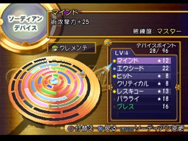 소디언 마스터가 쓰는 술법은 장비하고있는 소디언에 의존한다. 그렇기에 스탄이 가진 화속성 소디언 「딤로스」와 루티가 가진 수속성의 소디언 「아트와이트」를 바꿔서 장비하게 되면, 수속성의 술법이나 회복술로 서포트에 활약하는 스탄이나, 화속성의 술법으로 공격하는 루티의 모습을 보는 것도 가능하다.