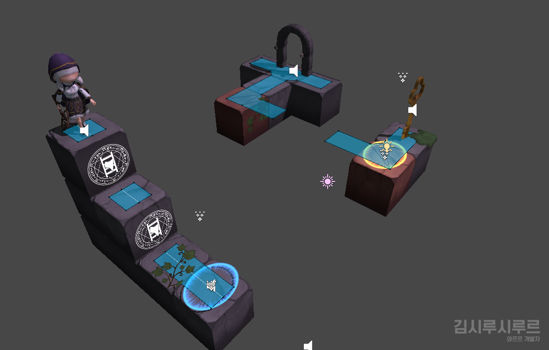 그러니 내가 여기에 길을 안 만들어두면 레테는 이 움직이는 큐브 위에 절대 탈 수가 없는거예요