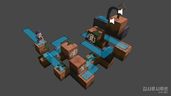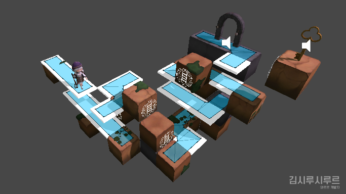 가령 이 이미지의 예시에서 보면, 오른쪽의 열쇠가 있는 큐브가 치워져야 저 길을 갈 수 있게 되겠죠.