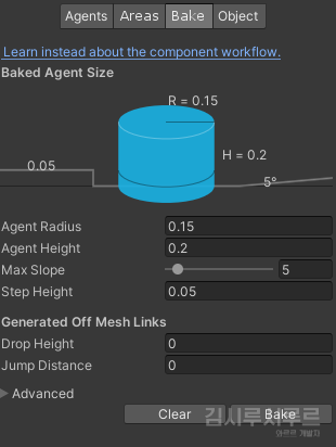 근데 여기서 에이전트 지름을 줄이면 내가 원하는대로 베이크가 안 되는거야 (너무 넓어)
