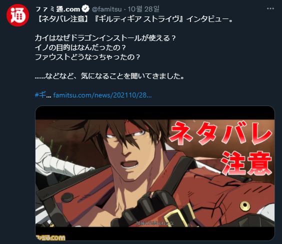 이 기사에서는 그 스토리 모드를 본 뒤, 신경 쓰였던 점, 의문스럽다 여겼던 점에 관해, 개발자인 이시와타리 씨와 카타노 씨를 인터뷰한 내용이다. 여기에 더해, 독자로부터 받은 「길티기어」에 대해 물어봐줬으면 하는 점도 Q&A 형식으로 진행했다.