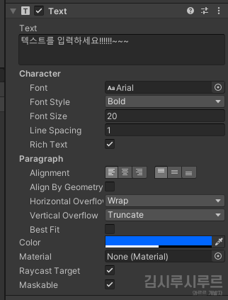 (이건 그 아래에 있는 Text 오브젝트도 마찬가지라서, 플레이어가 입력할 텍스트의 속성을 정할 수 있습니다.)
